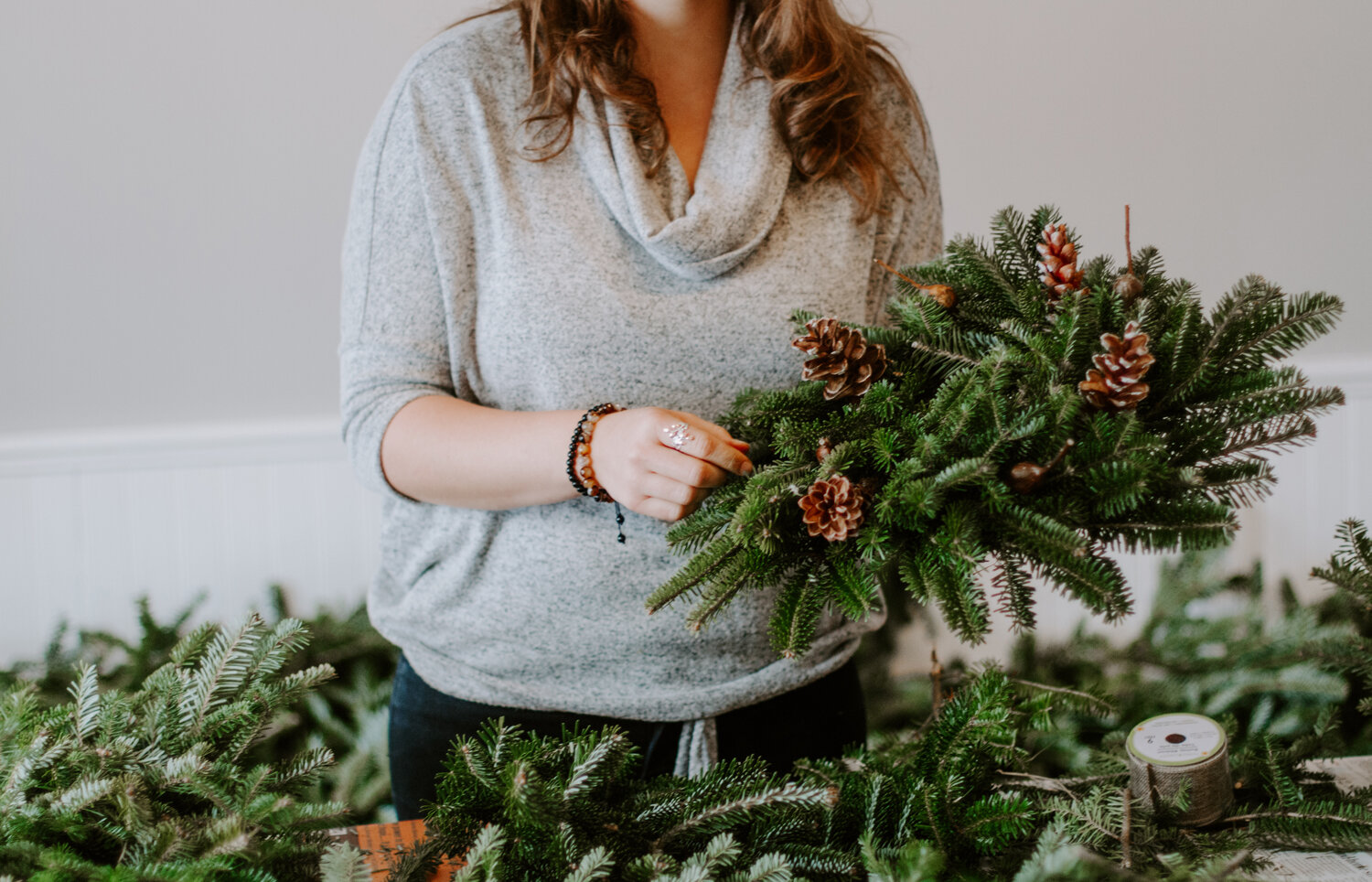 Well, this last weekend I combined my love for hosting with my love for wreath making. Having worked at a Christmas tree farm for years, I can’t stop the itch to gather greenery and pinecones every time December 1st rolls around. I invited the girls over for an afternoon of coffee, scones and learning how to makes wreaths; Graham and I collected pinecones every time we took a walk, and I gave the heads up to Michael that we’d be bringing home a truckload of greenery along with our Christmas trees this year.